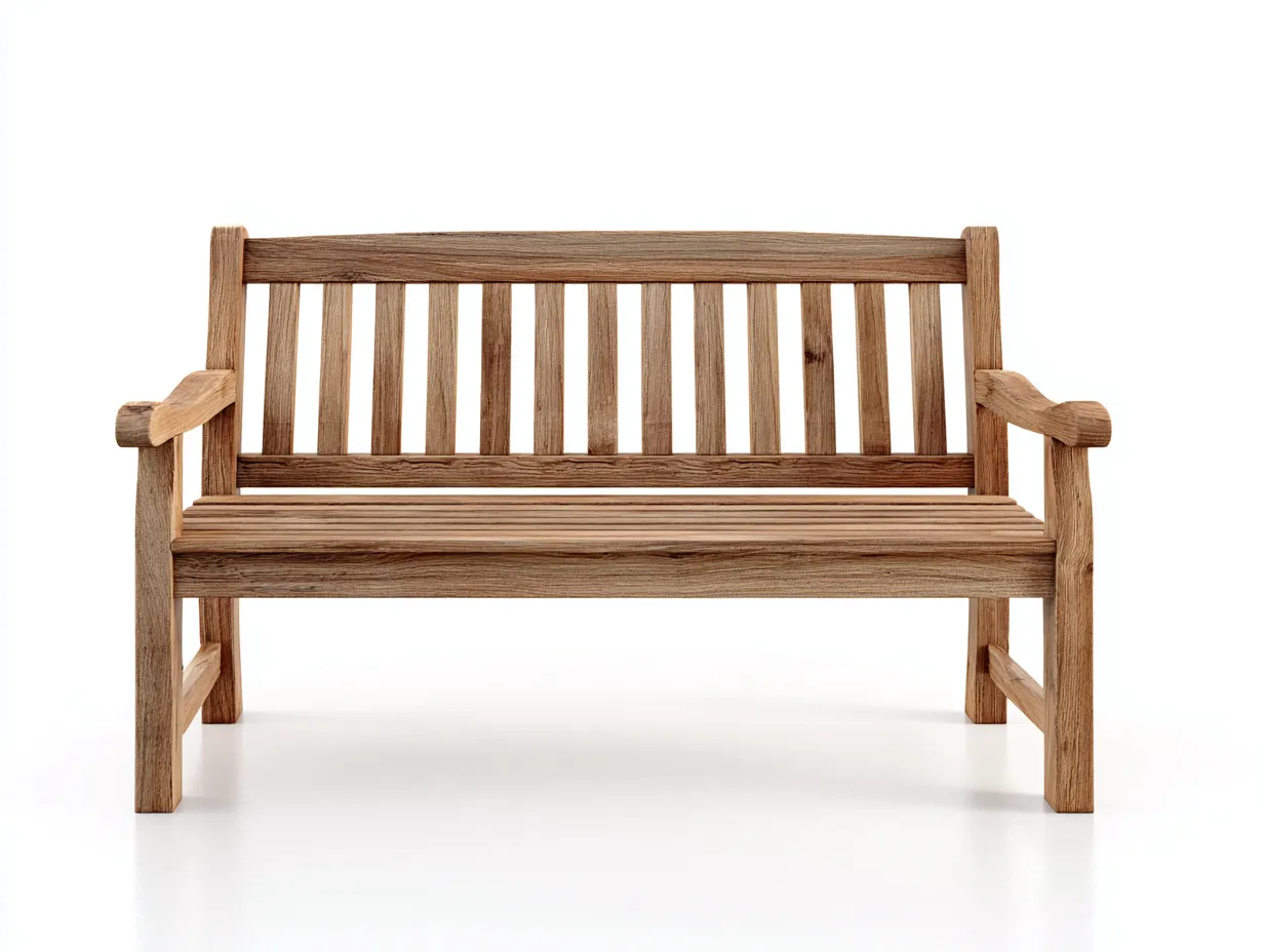 Die Gartenbank ist vollständig aus Holz in Naturholzfarbe gefertigt. Rückenlehne und Sitzfläche bestehen aus gleichmäßig angeordneten Holzleisten. Die Oberflächen sind glatt geschliffen und für den regelmäßigen Einsatz im Außenbereich geeignet.